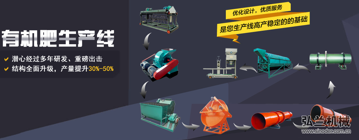 一、有机肥生产线主要分为:前期预处理部分和造粒生产部分。前期预处理部分又叫粉状有机肥加工设备为:发酵翻堆机、有机肥粉碎机、滚筒筛分机等设备。 造粒生产部分为:混合搅拌机、有机肥造粒机、回转式烘干机、冷却机、滚筒筛分机、包膜机、自动称量包装机。通过有机肥生产线把畜禽粪便、秸秆稻壳、沼渣污泥、餐厨垃圾、城市废弃物加工成有机肥既能降低环境污染又能变废为宝。
